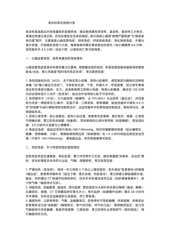 急诊科常见疾病分类