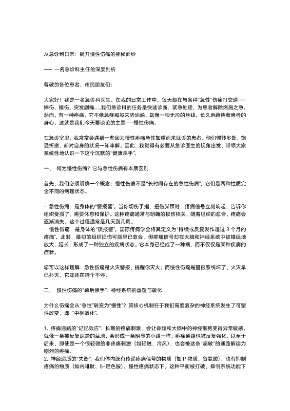 从急诊到日常:揭开慢性伤痛的神秘面纱