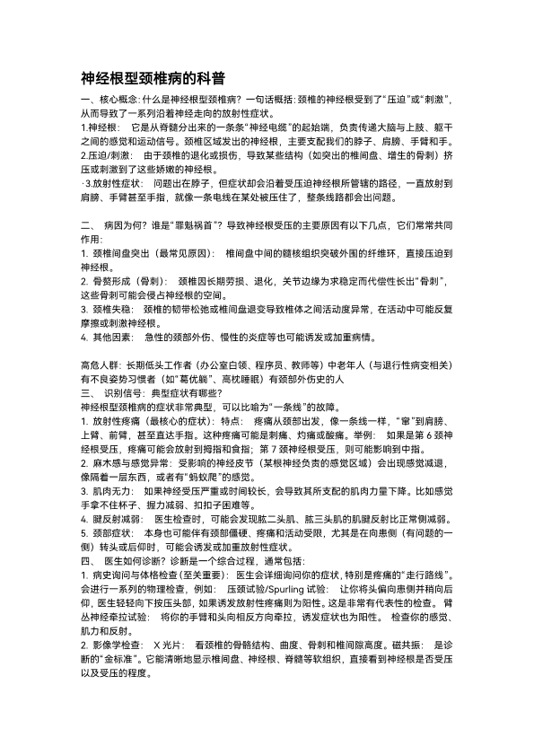 神经根型颈椎病的科普