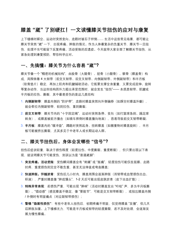 膝盖“崴”了别硬扛!一文读懂膝关节扭伤的应对与康复