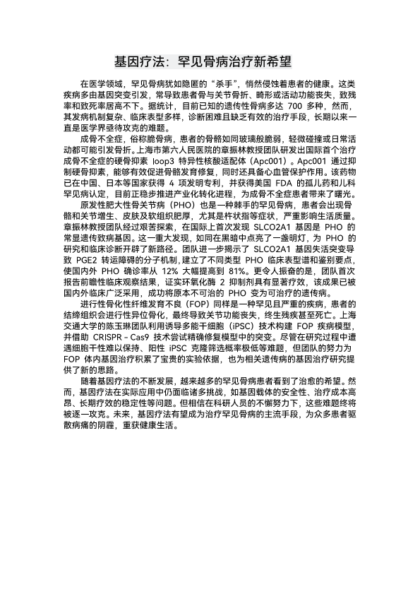 基因疗法:罕见骨病治疗新希望