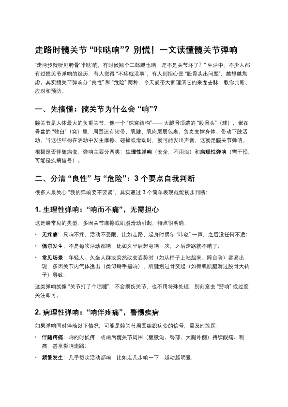走路时髋关节“咔哒响”?别慌!一文读懂髋关节弹响