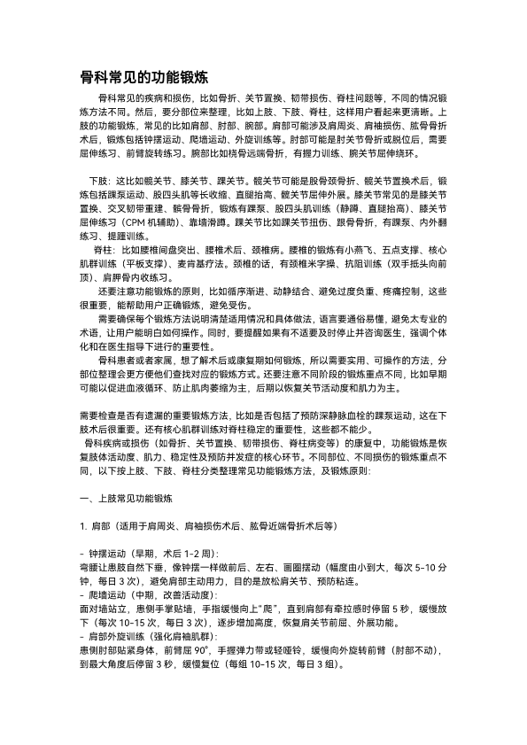 骨科常见的功能锻炼