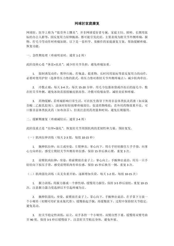 网球肘家庭康复