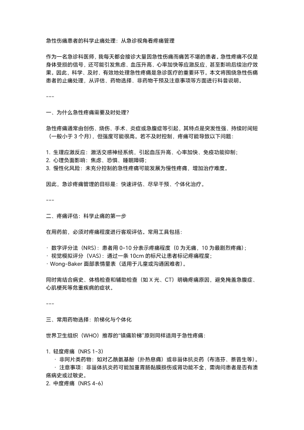 急性伤痛患者的科学止痛处理