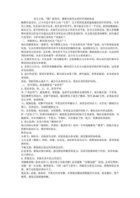 顶天立地,“腰”挺得住:腰椎间盘突出的科学预防指南