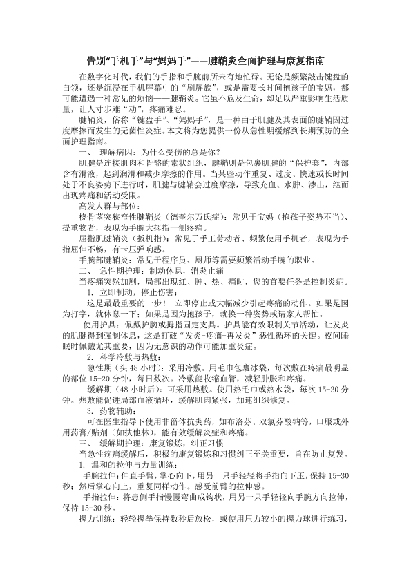告别“手机手”与“妈妈手”一腱鞘炎全面护理与康复指南