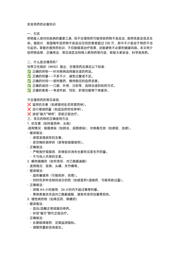 安全用药的必备常识