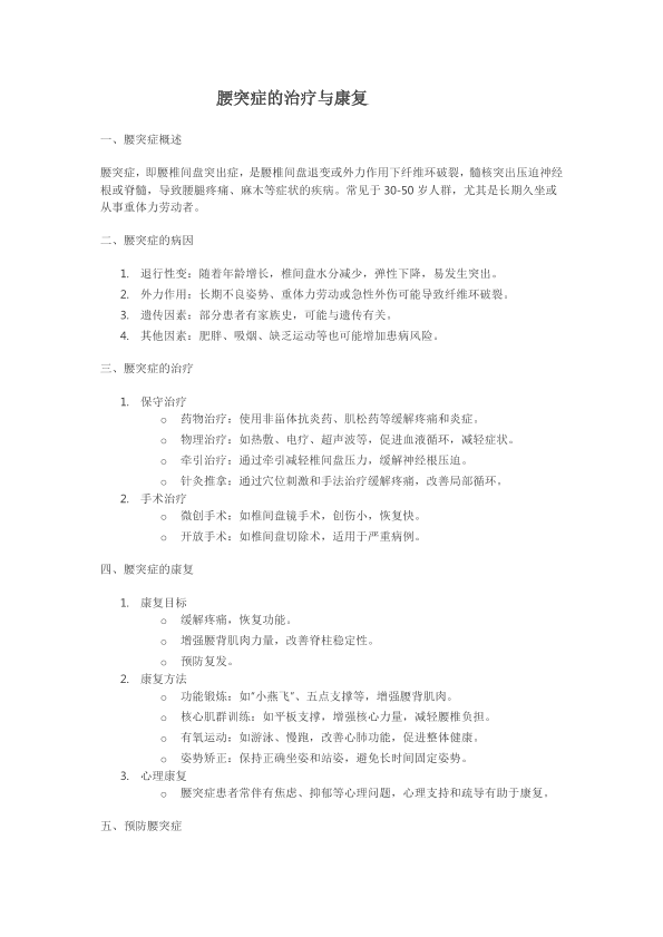 腰突症的治疗与康复