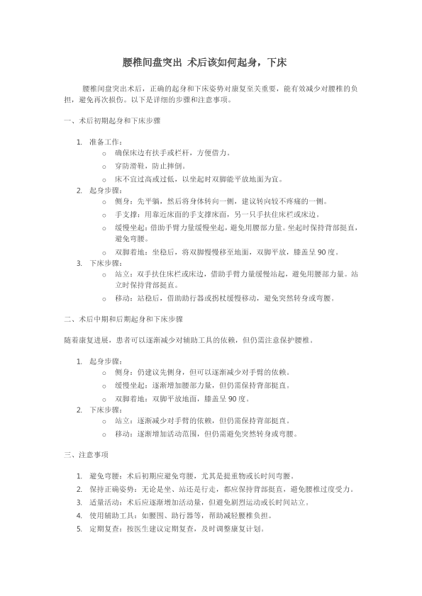 腰椎间盘突出术后该如何起身,下床