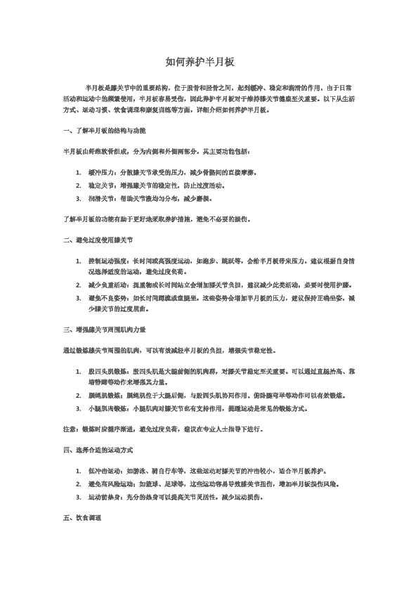 如何养护半月板