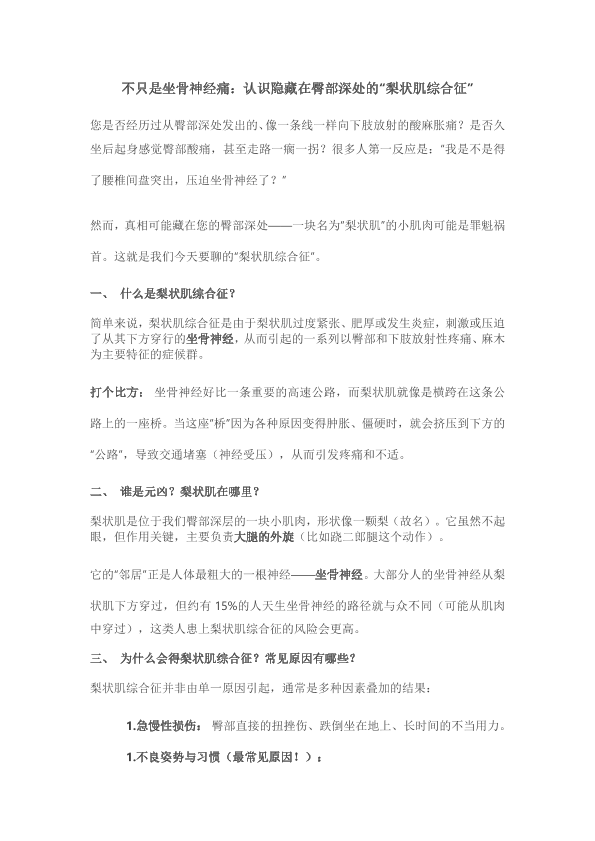 不只是坐骨神经痛:认识隐藏在臀部深处的“梨状肌综合征”