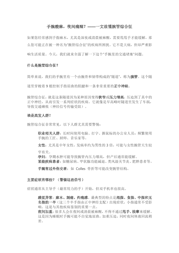 手腕酸麻,夜间痛醒?——一文读懂腕管综合征