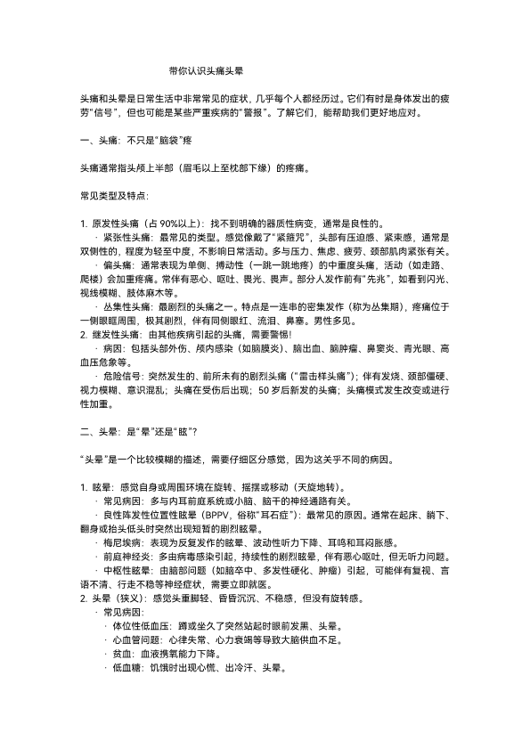 带你认识头痛头晕