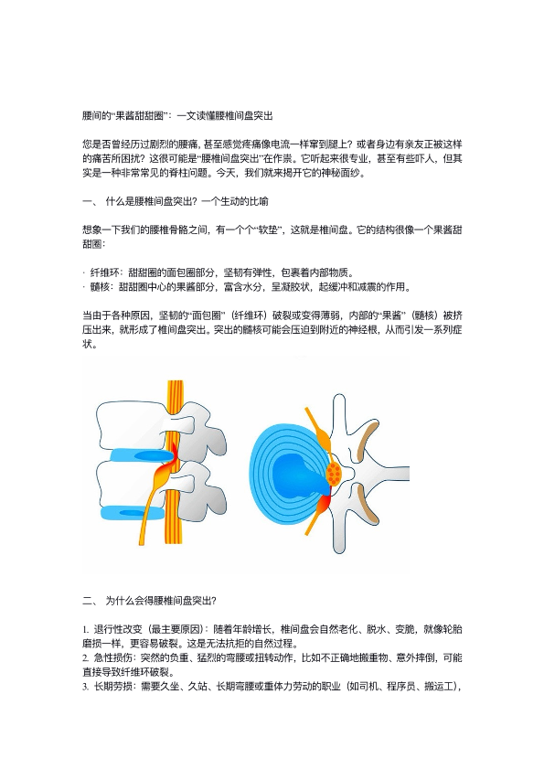 腰间的“果酱甜甜圈”:⼀⽂读懂腰椎间盘突出