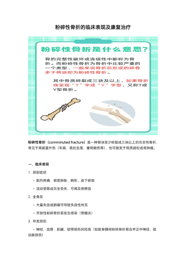 粉碎性骨折的临床表现及康复治疗