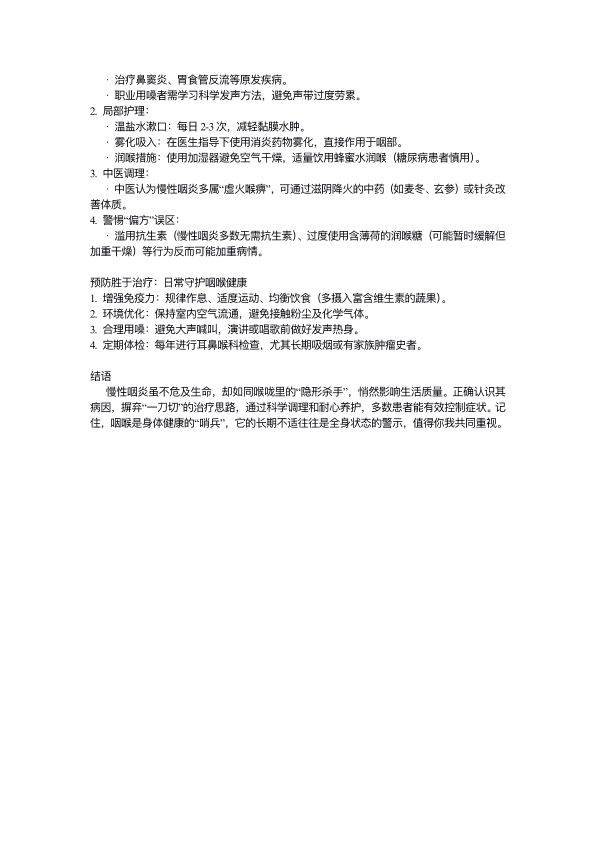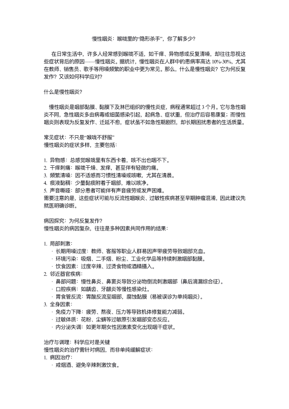 慢性咽炎:喉咙里的隐形杀手