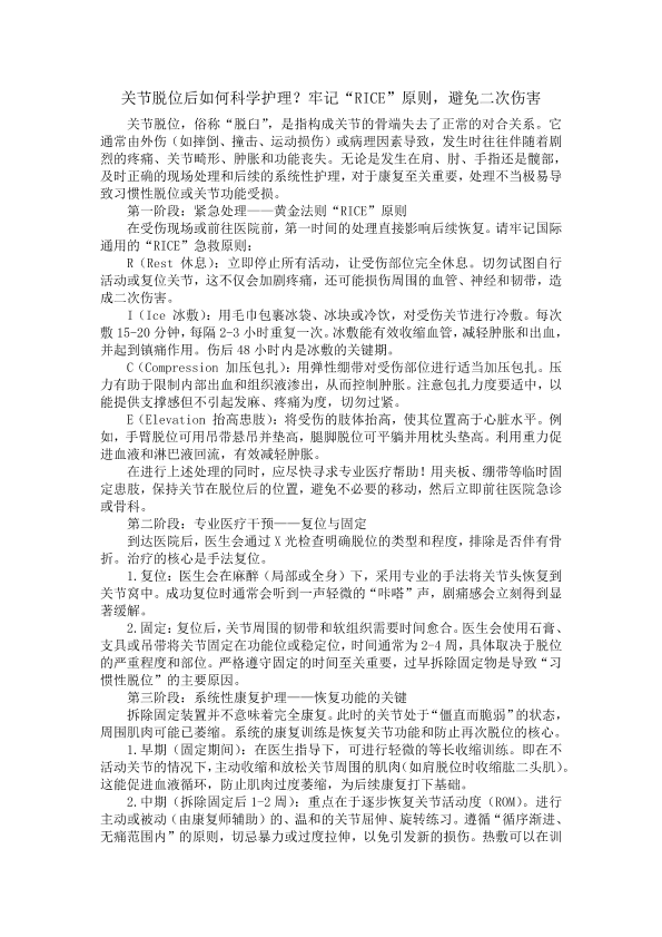 关节脱位后如何护理?
