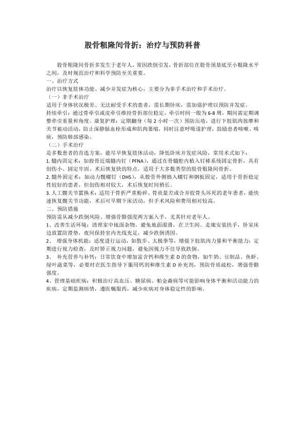 股骨粗隆间骨折 预防与治疗