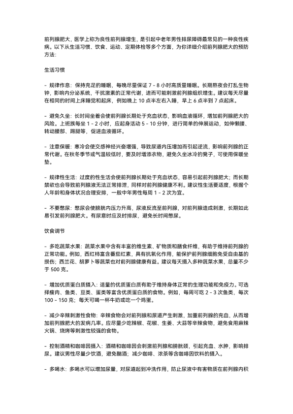 怎样预防前列腺肥大