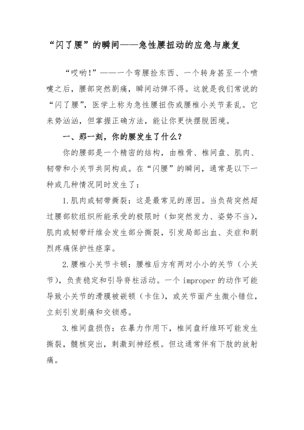 “闪了腰”的瞬间——急性腰扭动的应急与康复
