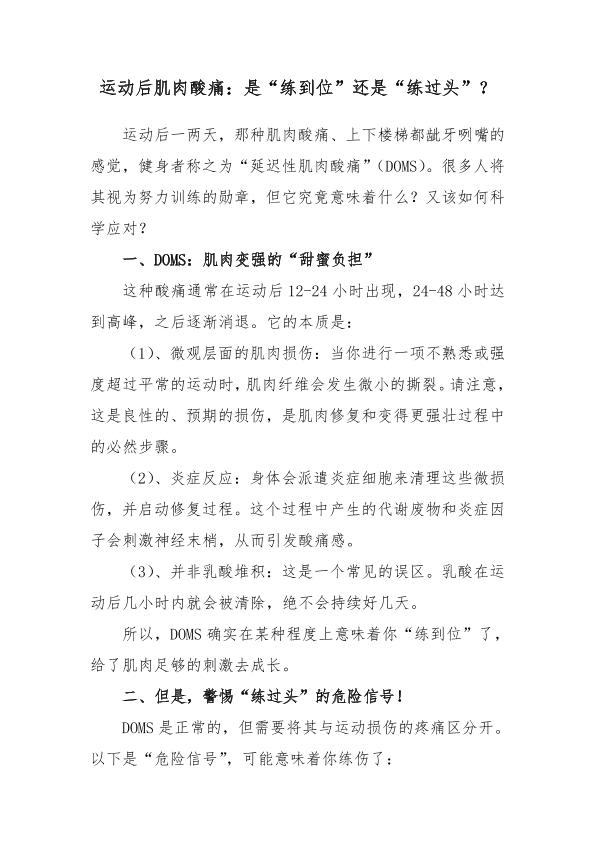 运动后肌肉酸痛:是“练到位”还是“练过头”?