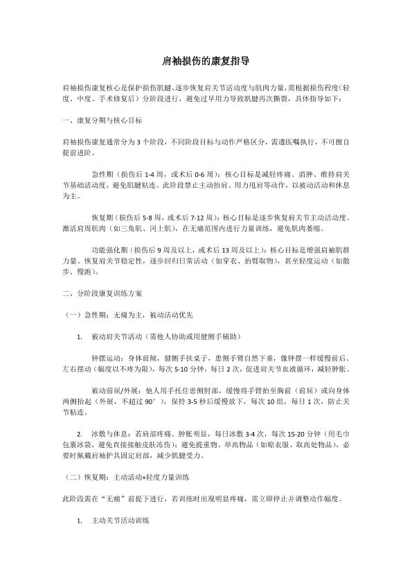 肩袖损伤的康复指导