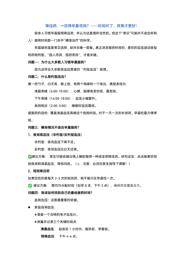 降压药,一定得早晨吃吗?——时间对了,效果才更好