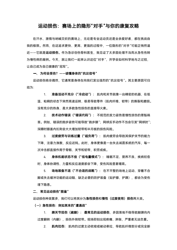 动损伤X赛场上的隐形 对手与你的康复攻略