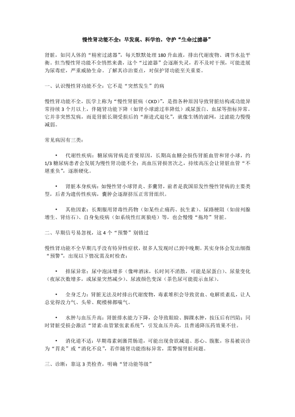 慢性肾功能不全:早发现、科学治,守护“生命过滤