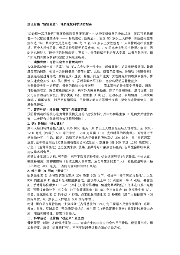 别让骨骼 “悄悄变脆”:骨质疏松科学预防指南