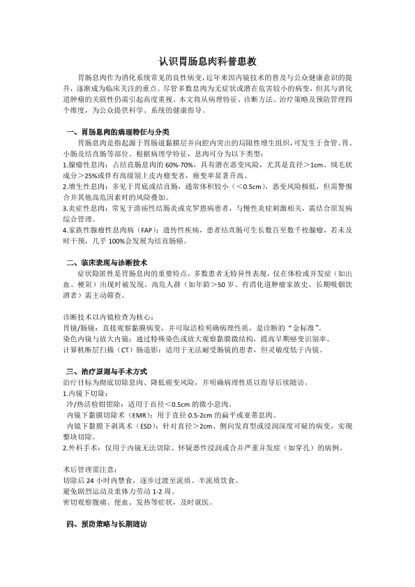 认识胃肠息肉科普患教