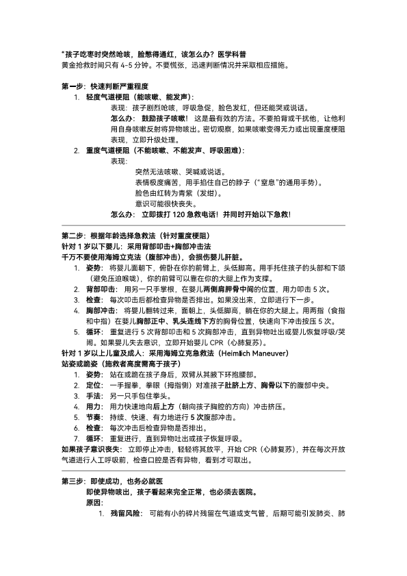 孩子吃枣时突然呛咳