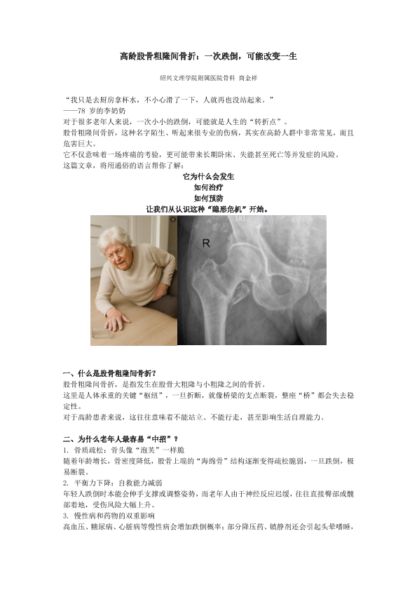 高龄股骨粗隆间骨折:一次跌倒,可能改变一生