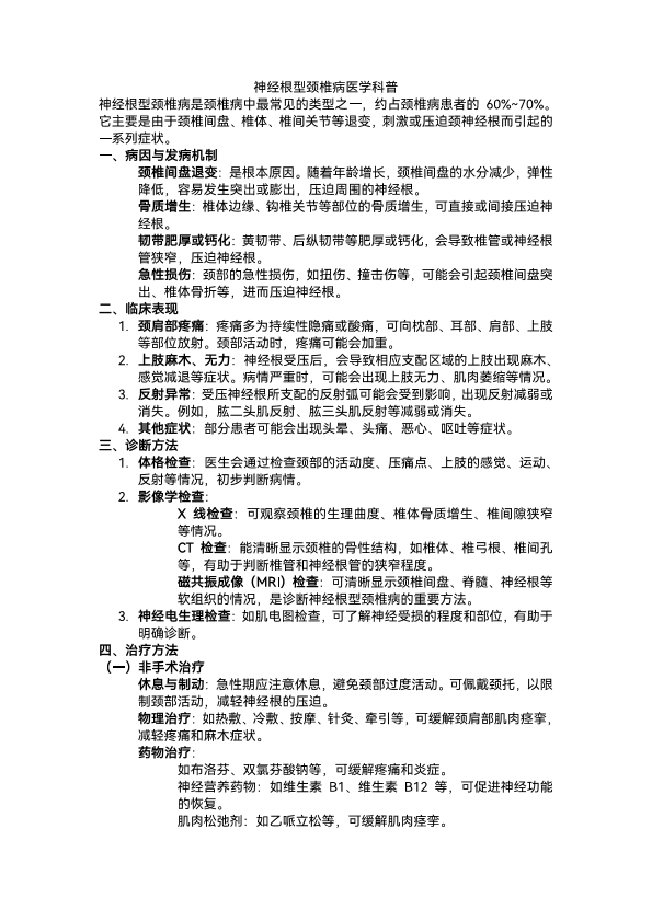 神经根型颈椎病医学科普