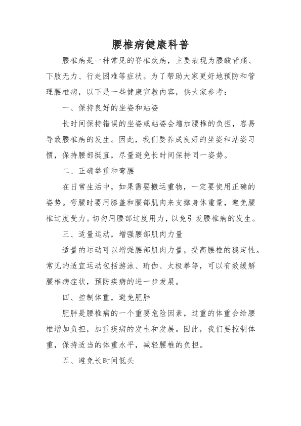腰椎间盘突出症相关知识及日常保健