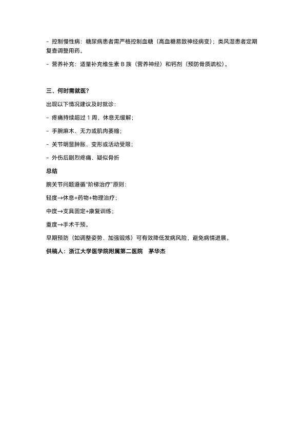 腕关节病变的治疗与预防