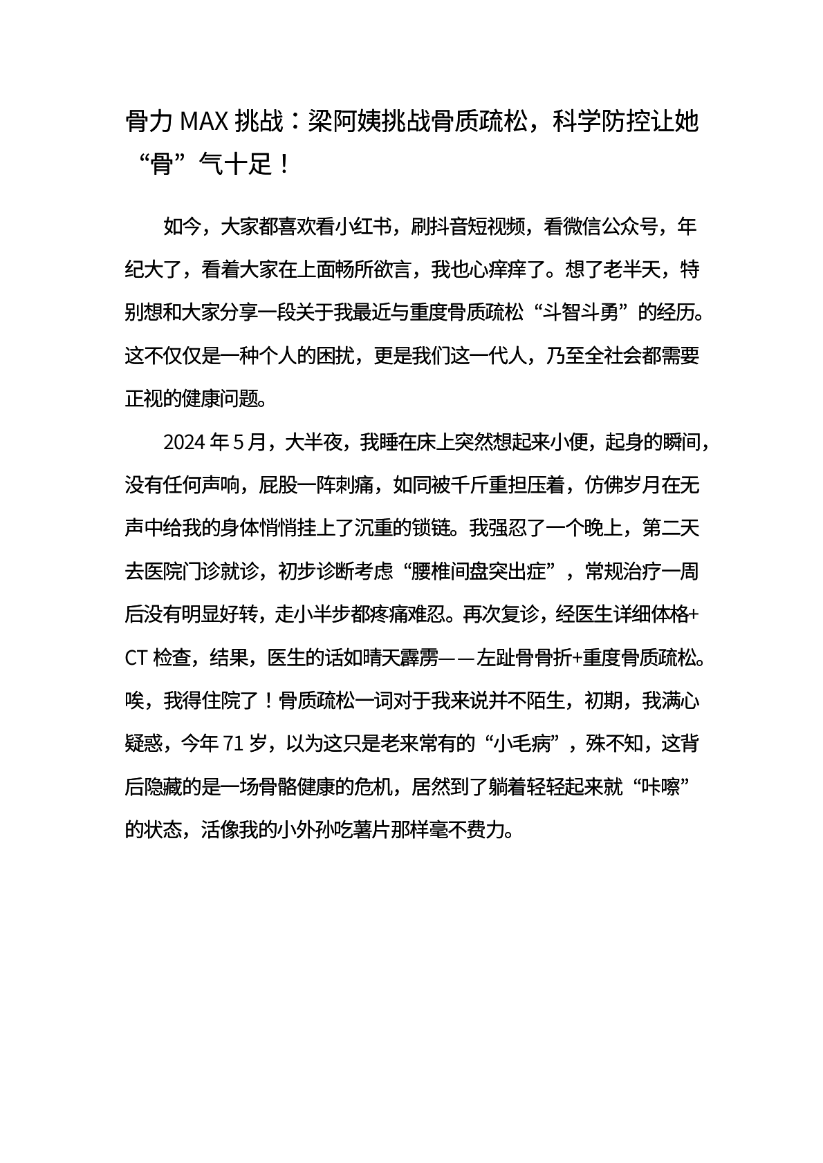 骨力MAX挑战:梁阿姨挑战骨质疏松,科学防控让她“骨”气十足!