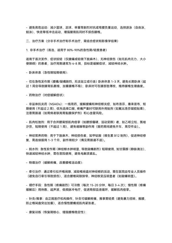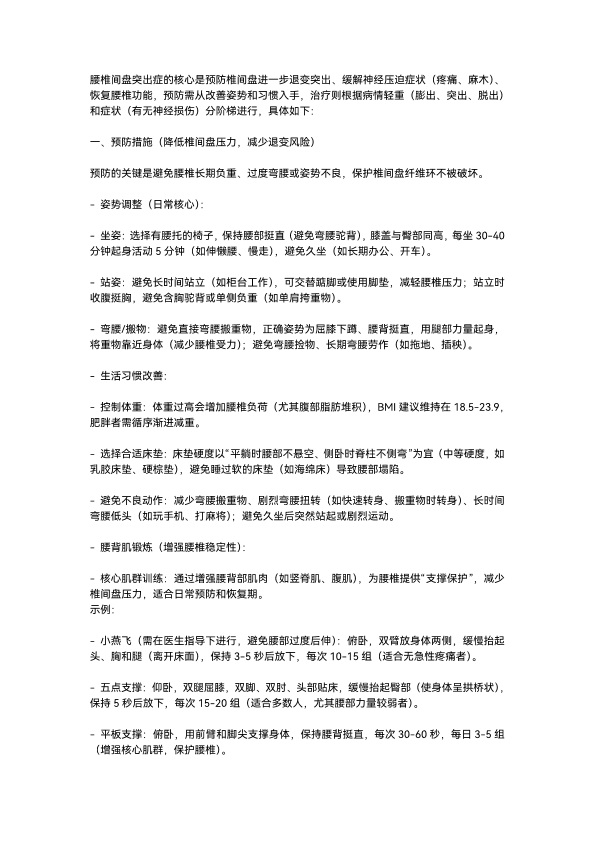 腰椎间盘突出的预防和治疗方案