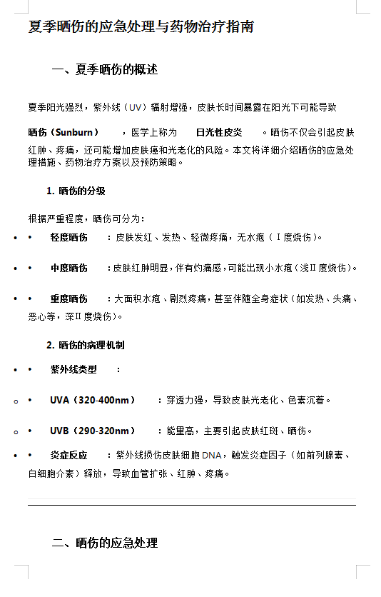 夏季晒伤的应急处理与药物治疗指南