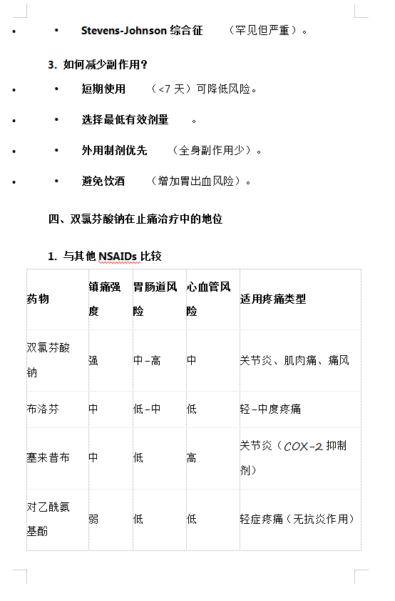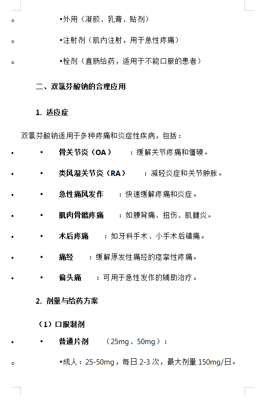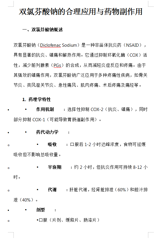 双氯芬酸钠的合理应用与药物副作用