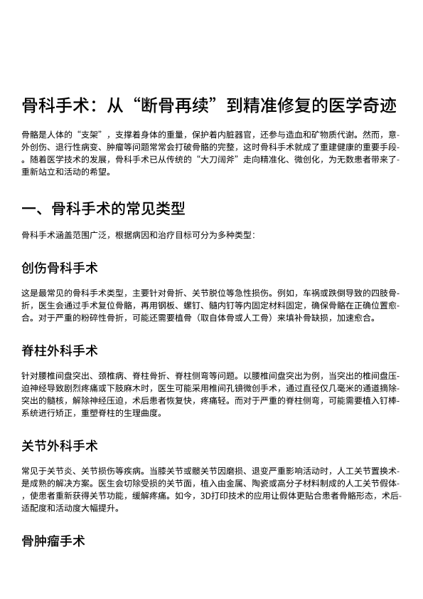 骨科手术:从“断骨再续”到精准修复的医学奇迹