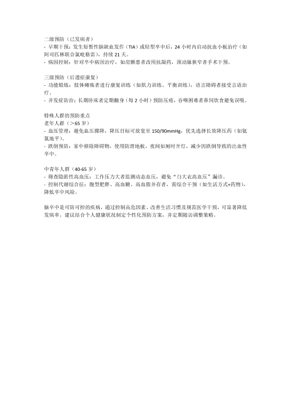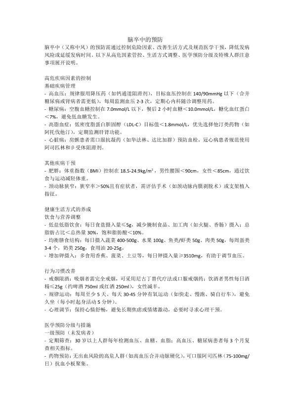 脑卒中的预防
