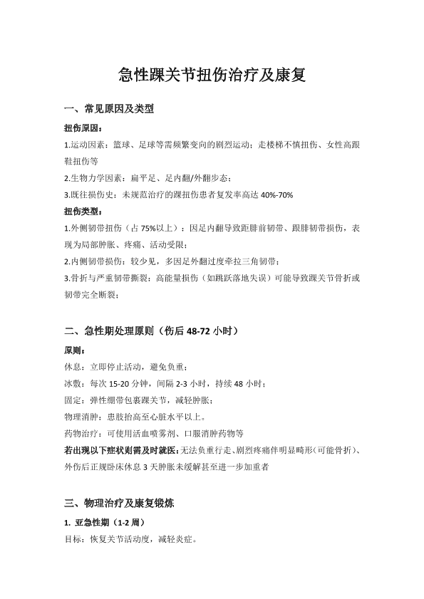 急性踝关节扭伤治疗及康复