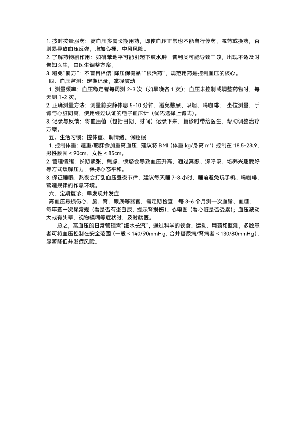 高血压患者的日常管理