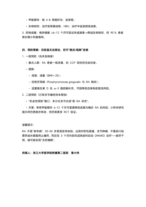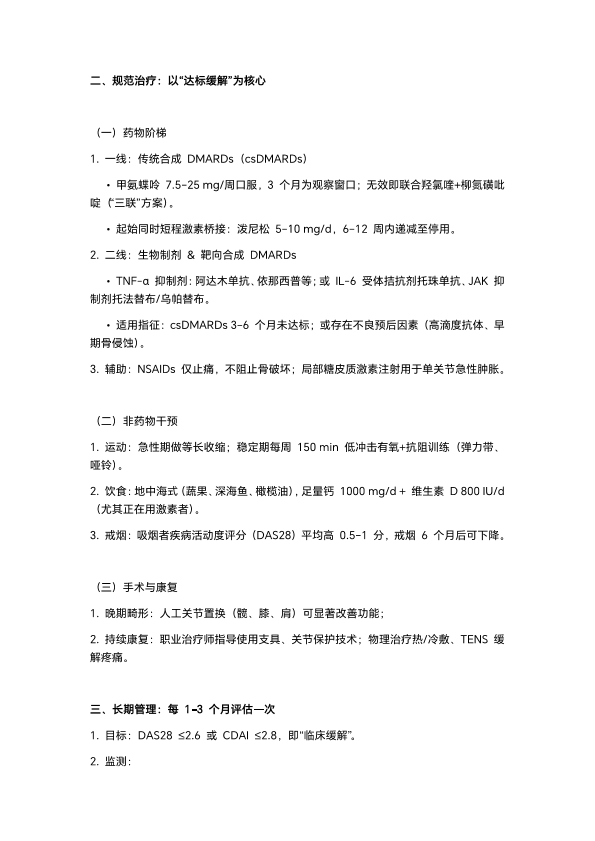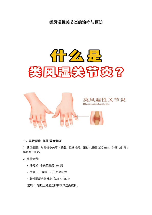 类风湿性关节炎的治疗与预防
