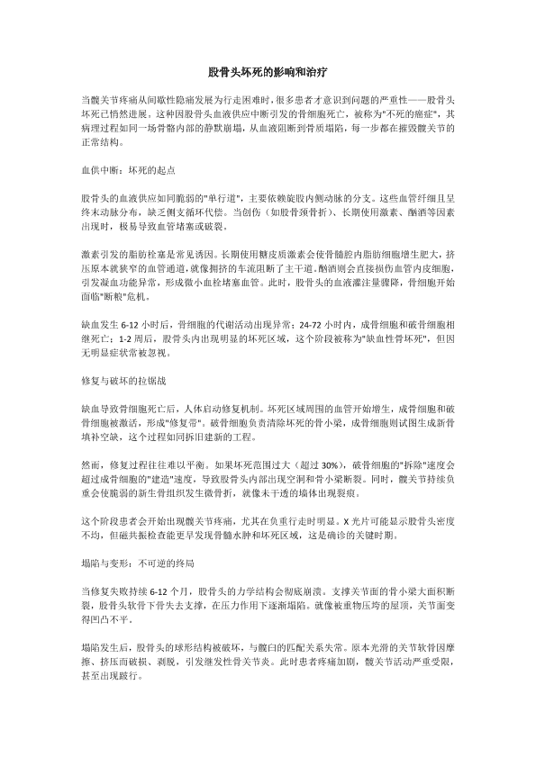 股骨头坏死的影响和治疗