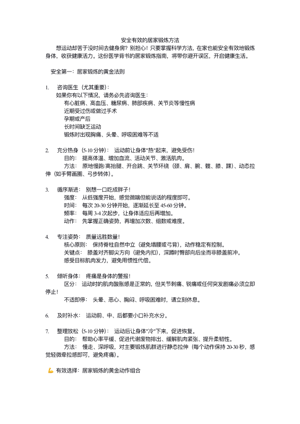 安全有效的居家锻炼方法