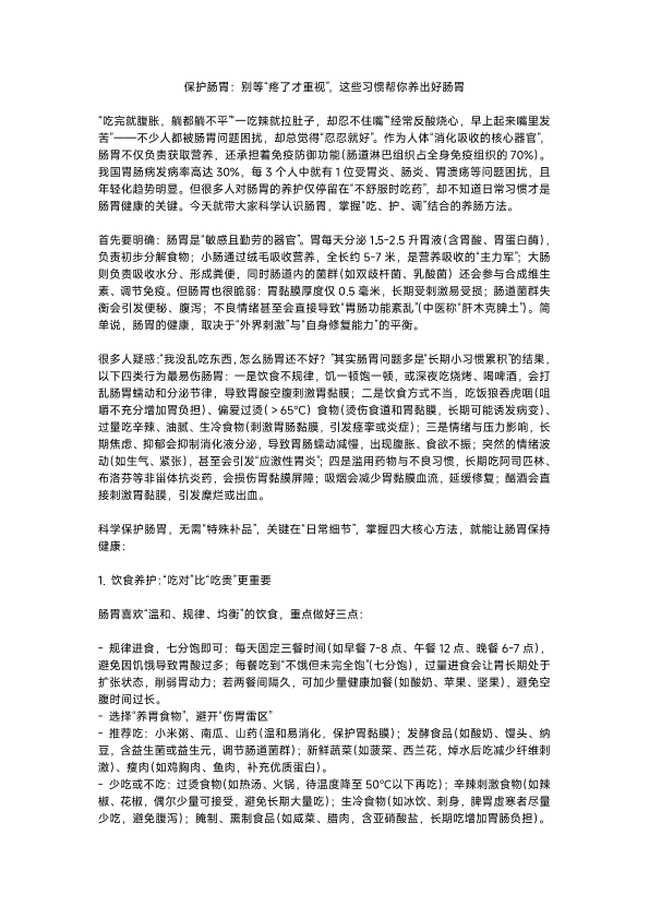 保护肠胃:别等“疼了才重视”,这些习惯帮你养出好肠胃