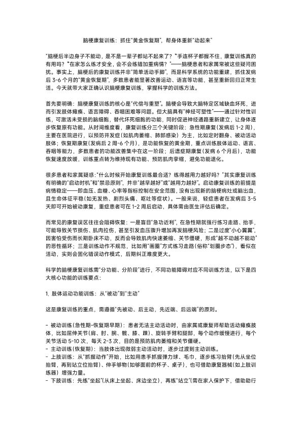 脑梗康复训练:抓住“黄金恢复期”,帮身体重新“动起来”